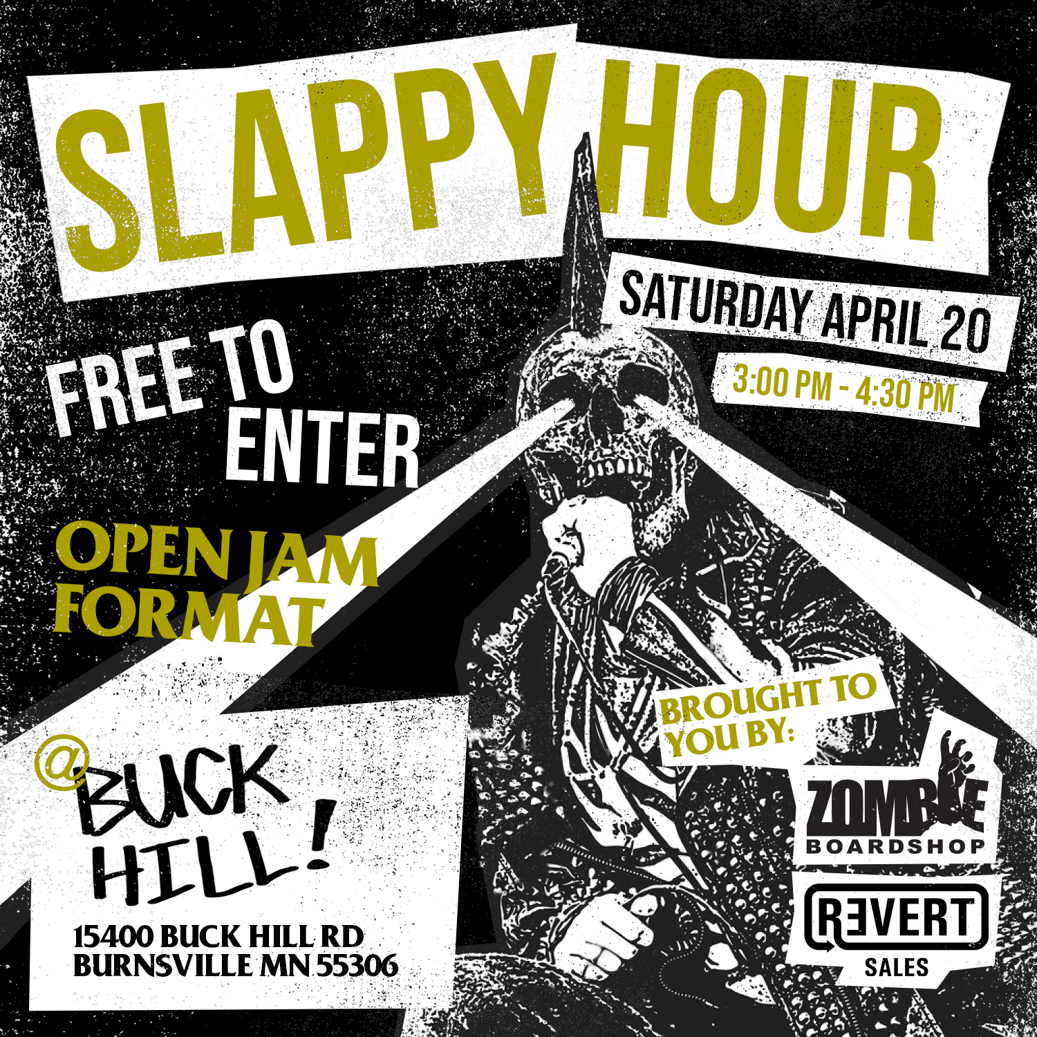 Zombie Boardshop and Revert Sales bring you Slappy Hour at Buck Hill on Saturday, April 20th! Join in on the hike rail jam sessions – we have snow!