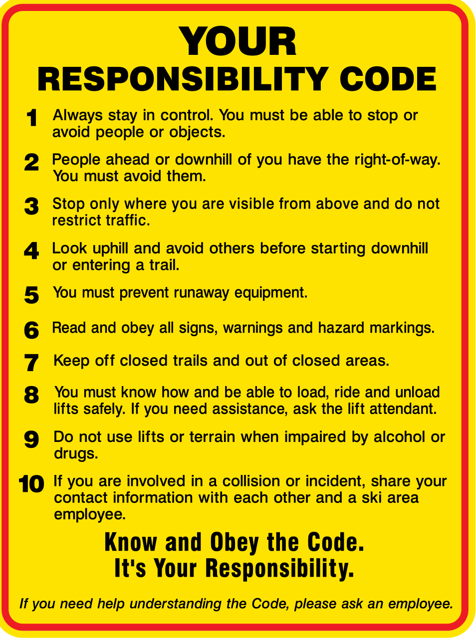 Stay alert to what’s going on around you, especially other skiers and riders. Being aware of those around and changing conditions will help you have a fun and safe day on the hill.